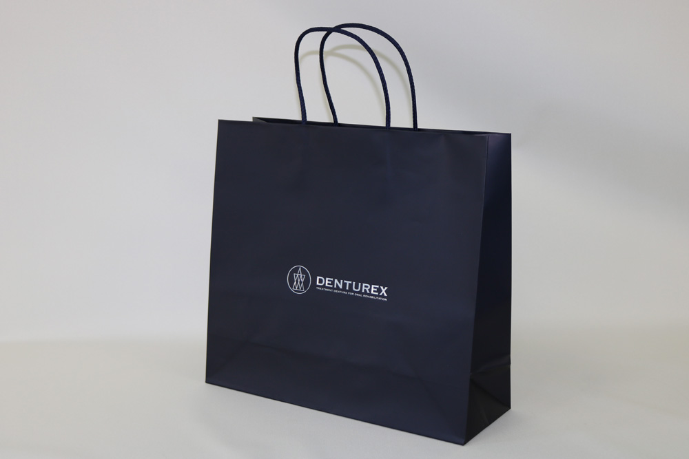 製造ロットは、100枚より既製品にロゴマーク印刷にて対応、オリジナル紙袋は500枚より製造いたします。