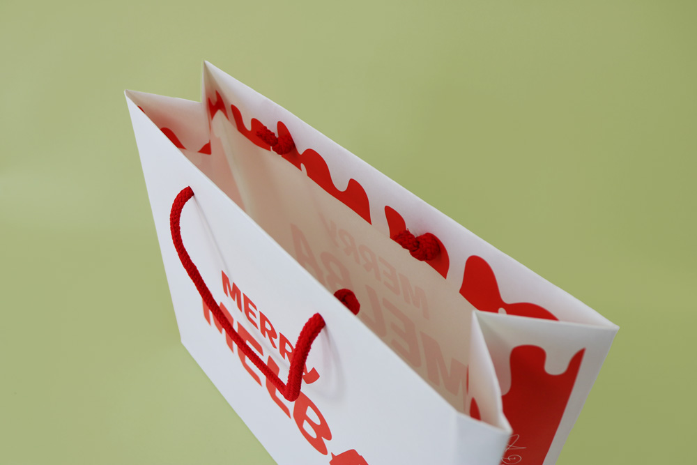 製造ロットは、100枚より既製品にロゴマーク印刷にて対応、オリジナル紙袋は500枚より製造いたします。